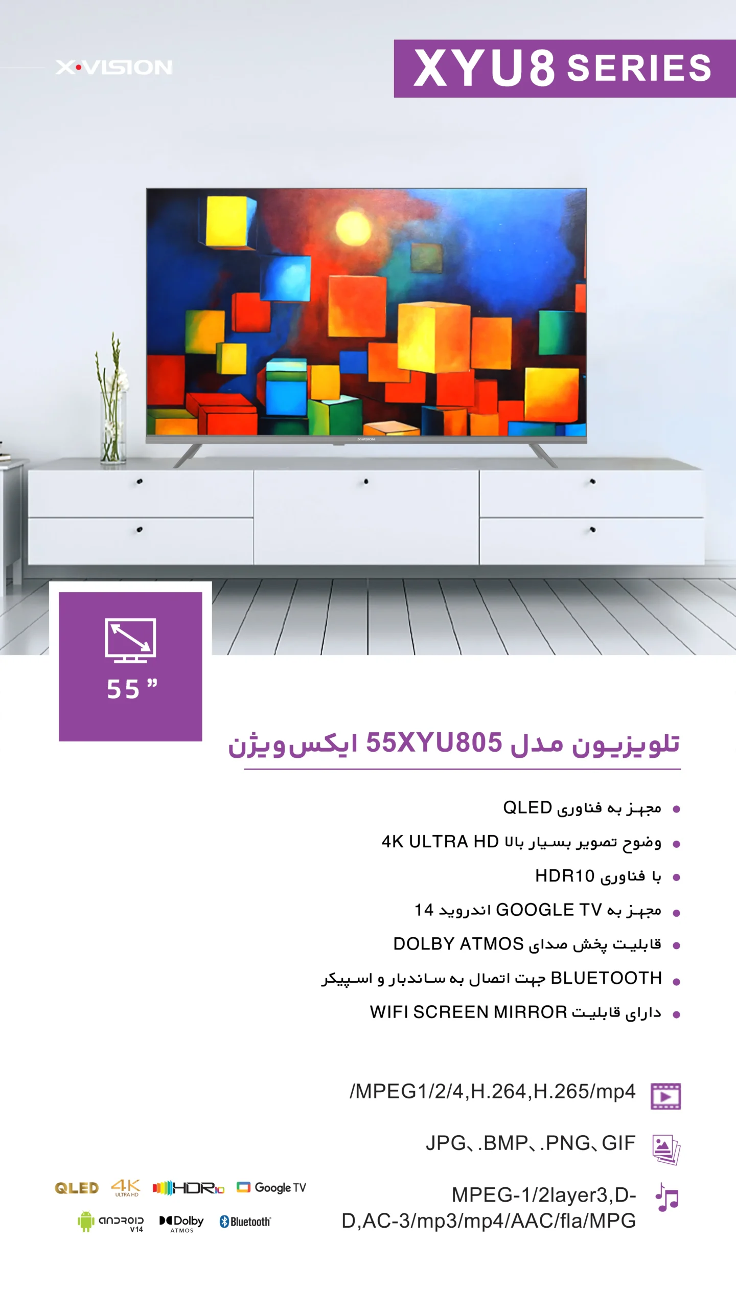 تلویزیون XYU805 ایکس ویژن 55 اینچ: تجربهای بینظیر در تماشا